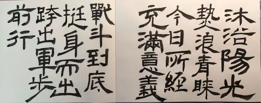 对教官严训,心凝铁石;同袍共进,志化虹芒。
