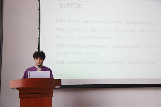 团委宣传部部长吴宗翰围绕新闻稿写作与摄影技巧进行细致讲解,副部长曹雨佳则针对公众号推文排版方法展开分享,内容实用、干货满满,有效提升了同学们的宣传实操能力。
