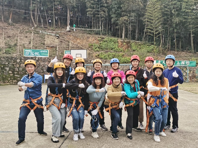 插花的“静”让大家的心灵得到了舒缓,那么丛林飞跃的“动”则为大家打开了一扇探险之门。探险小分队团结合作,互帮互助,在惊险刺激中完成了整个穿越过程,老师们不仅有来自感官上的速度与激情,还有精神上的愉悦,享受着回归自然、拥抱绿色带来的新鲜气息。