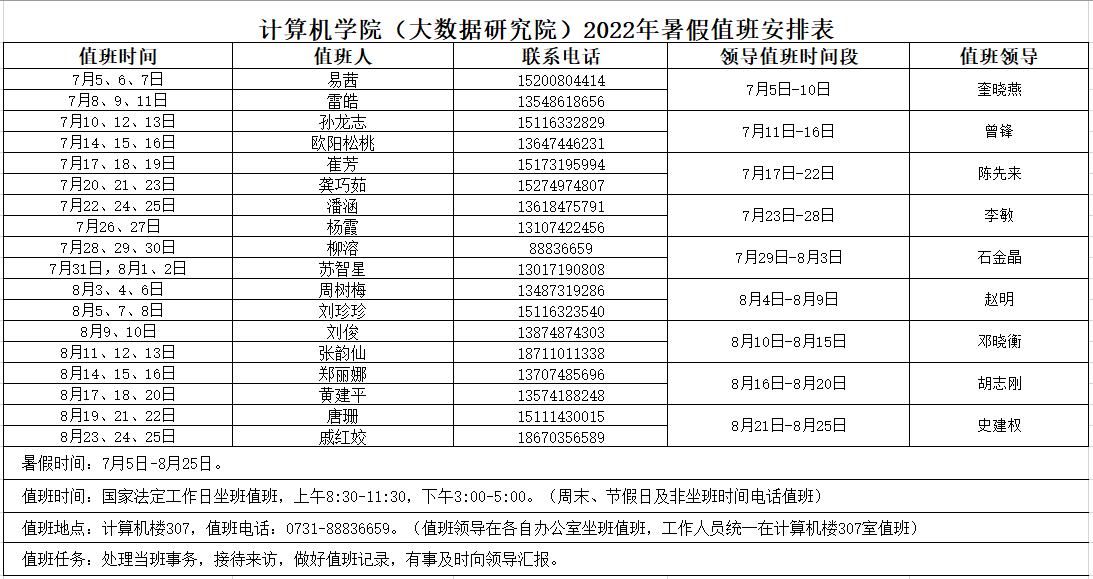 5严格遵守假期值班纪律。工作日安排值班人员(含带班领导)在办公室坐班,时间为上午8:30-11:30,下午3:00-5:00;周末、节假日及非坐班时间电话值班。遇有突发事件和重要紧急情况要及时准确报值班人员(值班表见附表1),并快速妥善处置。因工作纪律落实不到位,导致工作延误或造成不良后果的,日本av片