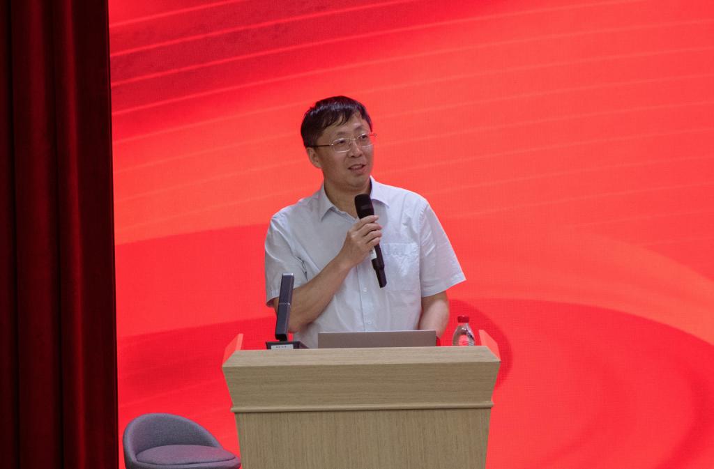 聘任仪式结束后,夏博辉教授正式开始了以“软件定义银行,数智赋能金融”为主题的学术报告。报告分为三部分,他分别巧引三句诗词相之一一匹配。第一句为“海阔凭鱼跃,天高任鸟飞”,他以此展开了“技术融合、在线、智能商业”的畅谈。第二句为“道生一,一生二,二生三,三生万物”,以阐述“互联互通:从机器互联到万物互联”的相关内容。紧接着第三部分为“众里寻他千百度,蓦然回首,那人却在灯火阑珊处”,引申“软件定义银行,数智赋能金融”的核心内容。在报告中,夏教授指出软件是一种赋能体系,介绍了软件定义内涵、意义及技术发展方向,他具体介绍了软件定义银行的核心内涵及打造数字金融的“科技骨架”的核心目标。最后,他展示了三湘银行的实践——按照“一个门户、两库、三个中台”的原则,重新定义用户、产品、流程,开发颠覆性的数智金融技术,重构“服务产业、发展智慧”的小微金融商业模式。