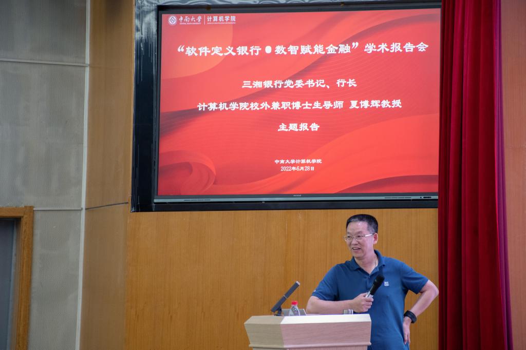 在新校区信息楼报告厅开展以“软件定义银行,数智赋能金融”为主题的学术报告会。与会的嘉宾有三湘银行副行长宋志明,人力资源部部长徐力,科技管理部高级专家路博,团委书记、行长秘书屈贝尔,日本av片