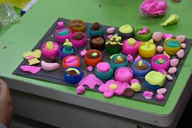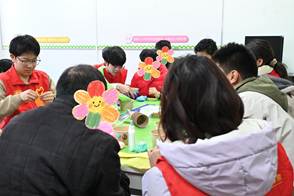 活动开始后,志愿者与学员们分成三组,开展了“纸浆花盆装饰”、“瓶盖创意画”和“创意粘土制作”三项活动。志愿者们以耐心的引导与学员搭建内心沟通的桥梁。慧灵学员们也以饱满的热情投入活动,用一个个手工作品展露内心真诚的情感。