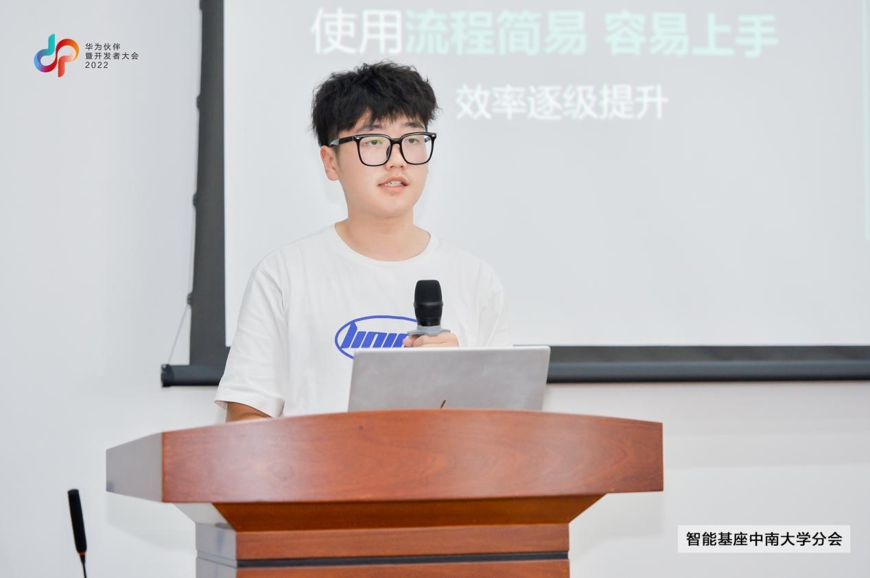 马洪旭同学就自己的参赛经历向同学分享,其团队基于华为云EI能力构建的“医疗+AI”解决方案,采用“云端辅助诊断+评估+诊疗方案+预后回访”的“互联网+医疗”服务模式的技术路线,致力于帮助肺癌患者选择更合适治疗方案达到更优的治疗效果。在谈到与华为云的合作时,马洪旭说,“华为云给企业带来的价值简单来说就是省时、省钱、省心、省力,让企业聚焦核心业务,同时企业可以依赖华为的强大生态和联合华为众多合作伙伴来加速企业创新。”