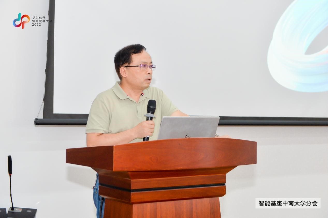 副院长王春生教授致辞。王春生院长认为,鲲鹏计算产业是基于鲲鹏处理器的基础软硬件设施、行业应用及服务,涵盖从底层硬件、基础软件到上层行业应用的全产业链条。华为作为鲲鹏计算产业的成员,聚焦计算架构创新、处理器和开源基础软件的研发,以及华为云服务,致力于推动鲲鹏生态发展。王院长还鼓励现场同学,提高思想认识,扎实学习有关知识,与企业一线专家多沟通、多交流,充分汲取营养从而提升自己。
