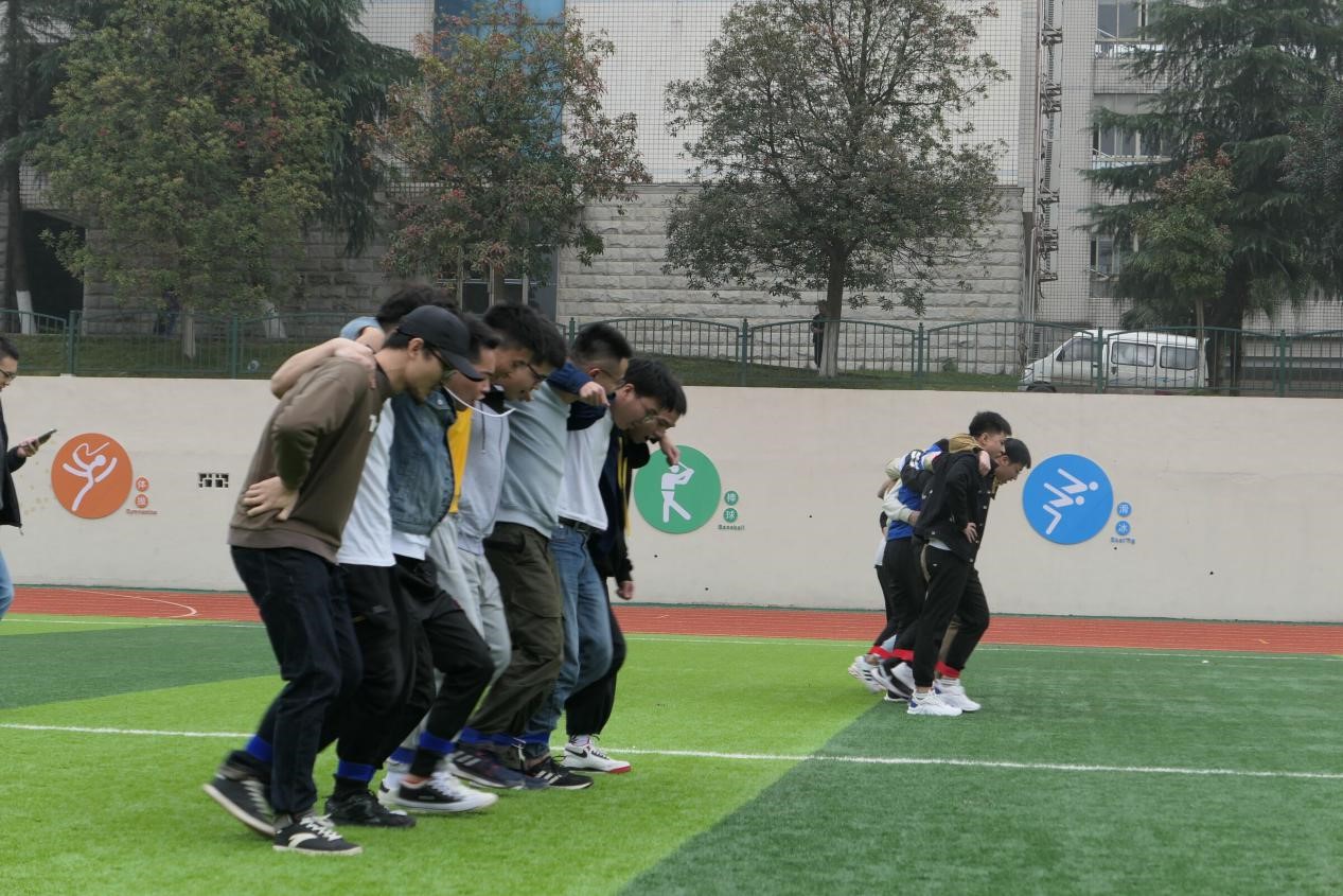 20级研究生各班级的8支学生队伍以及1支教师队伍构成,通过袋鼠跳、八人九足、车轮滚滚、搭桥过河、运动串烧马拉松、同心鼓击球6个项目进行智慧与体力的角逐、团结与协作的比拼。