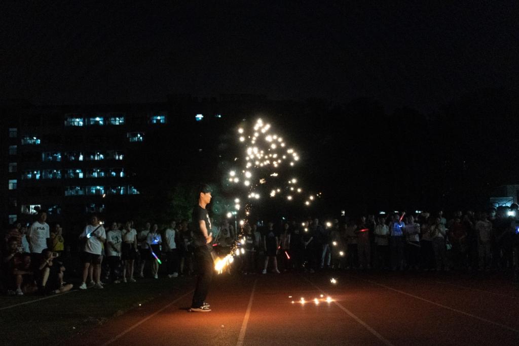 学生一齐进行第一次荧光夜跑。迎着清凉的晚风,同学们腕上的点点微光,汇成星辰大海,点亮了夏夜的南校操场,轻快的脚步声踏出了属于中南学子的运动活力。