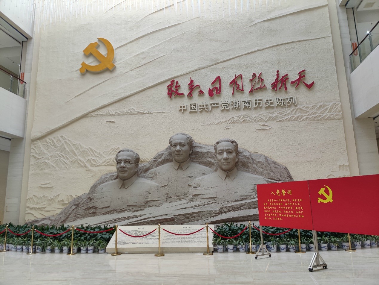 湖南党史陈列馆作为一座大型省级综合性展览馆,很好的保存和发扬了湖南的光荣党史,陈列馆以“敢教日月换新天”为主题,重点展示了中共湖南地方组织的发展历程和湖南党史军史人物的光辉业绩,展现了党在湖南领导人民进行革命、建设和改革所取得的辉煌成就和宝贵经验。陈展按照历史发展脉络分为三个展厅,分别以“开辟新天地”、“描绘新画卷”、“谱写新篇章”为题,展示新民主主义革命、全面建设社会主义、改革开放三个历史时期。伴随讲解员声情并茂的讲解,湖南党史的脉络与细节清晰而生动地展现在学生们的面前,同学们深深为老革命家“苟利国家生死以,岂因祸福避趋之”的革命精神所震撼,为陈列文物背后的动人故事所打动。