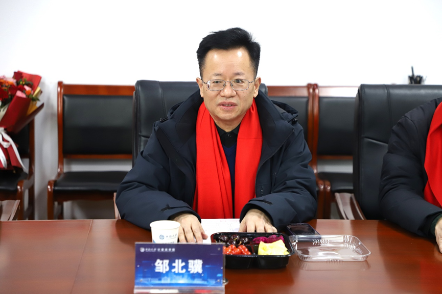 党委书记赵晓霞,院长李敏,党委副书记王新辉,副院长曾锋、冯启龙,离退休党支部书记谭汉松,黄建平老师和三位荣休教师邹北骥、史建权、苏智星参加座谈。会议由曾锋主持。