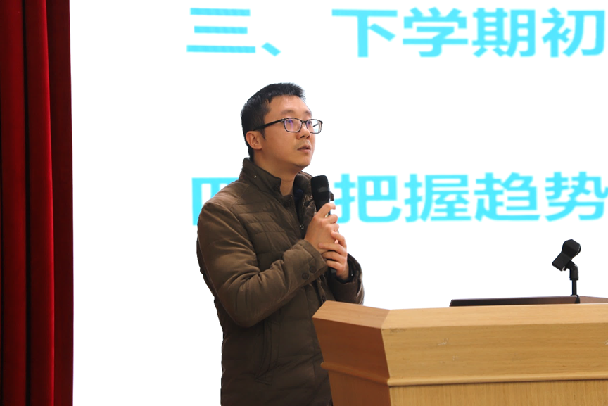 党委副书记王新辉分别就各自分管的本科生教学、研究生教学、师德师风建设、安全工作、学生工作等方面进行工作总结回顾和布置安排。