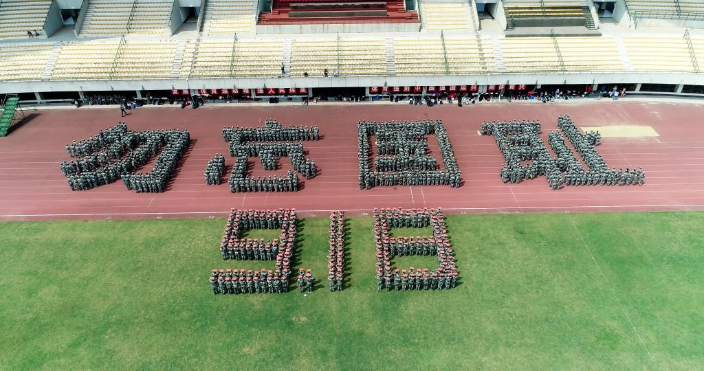的2019级新生在学校体育场摆出了“918”字形,以此纪念“九一八事变”。