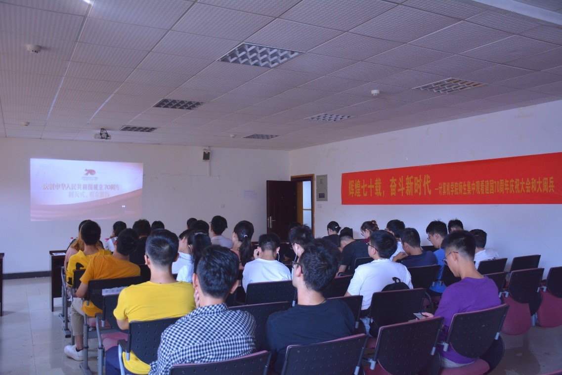 组织党员干部于本部计算机楼和铁道校区第二综合楼进行主题为“辉煌七十载,奋斗新时代”的阅兵仪式观礼活动,日本av片