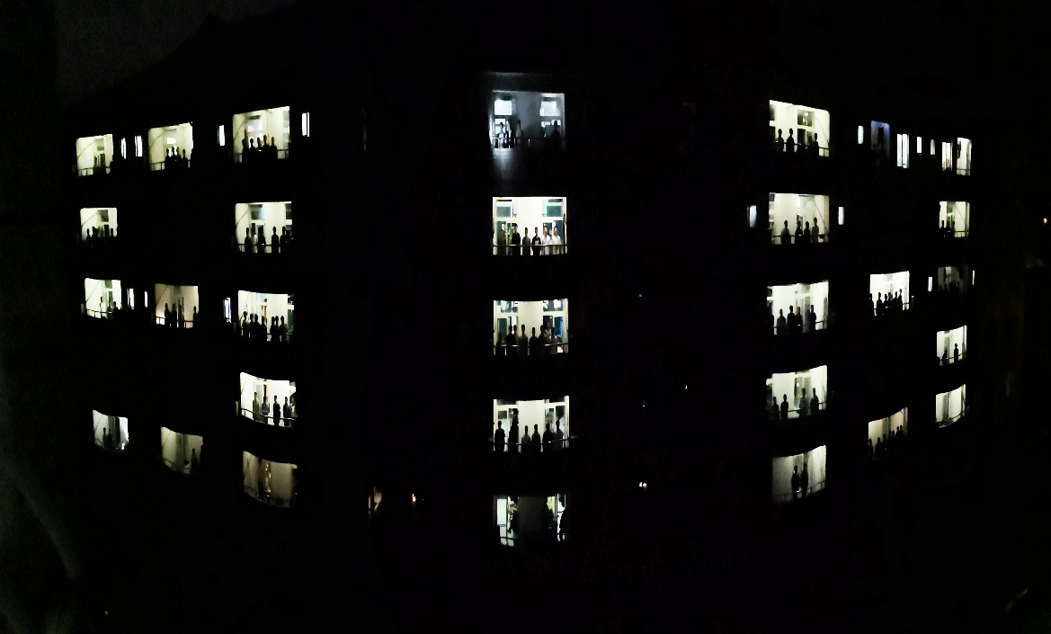升华公寓28栋北的学子们用寝室的灯光摆出了“918”的字样,并在十一连一排排长黄开能的带领下整齐划一、庄严肃穆地高喊:铭记历史,吾辈自强!以此纪念“九一八事变”89周年。