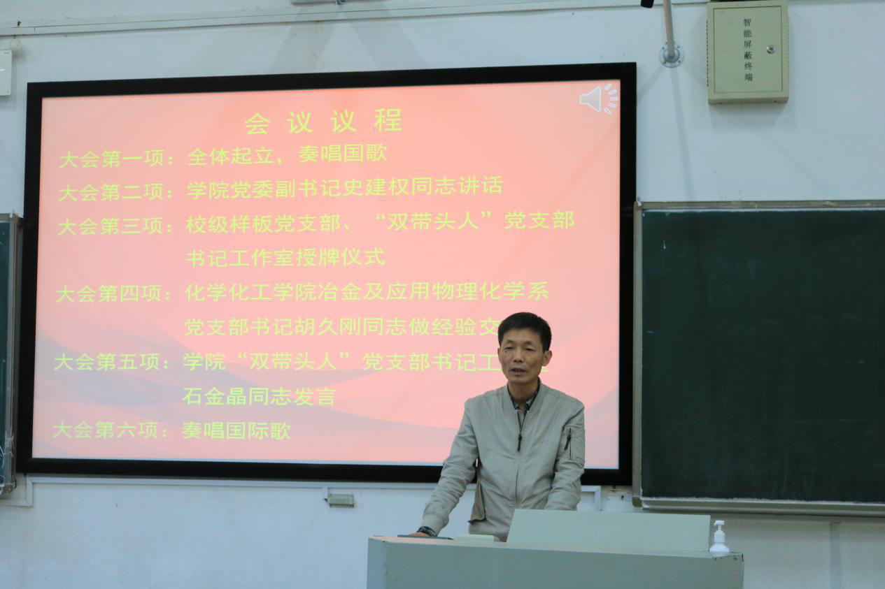 冶金与应用物理化学系党支部书记胡久刚做经验交流。
