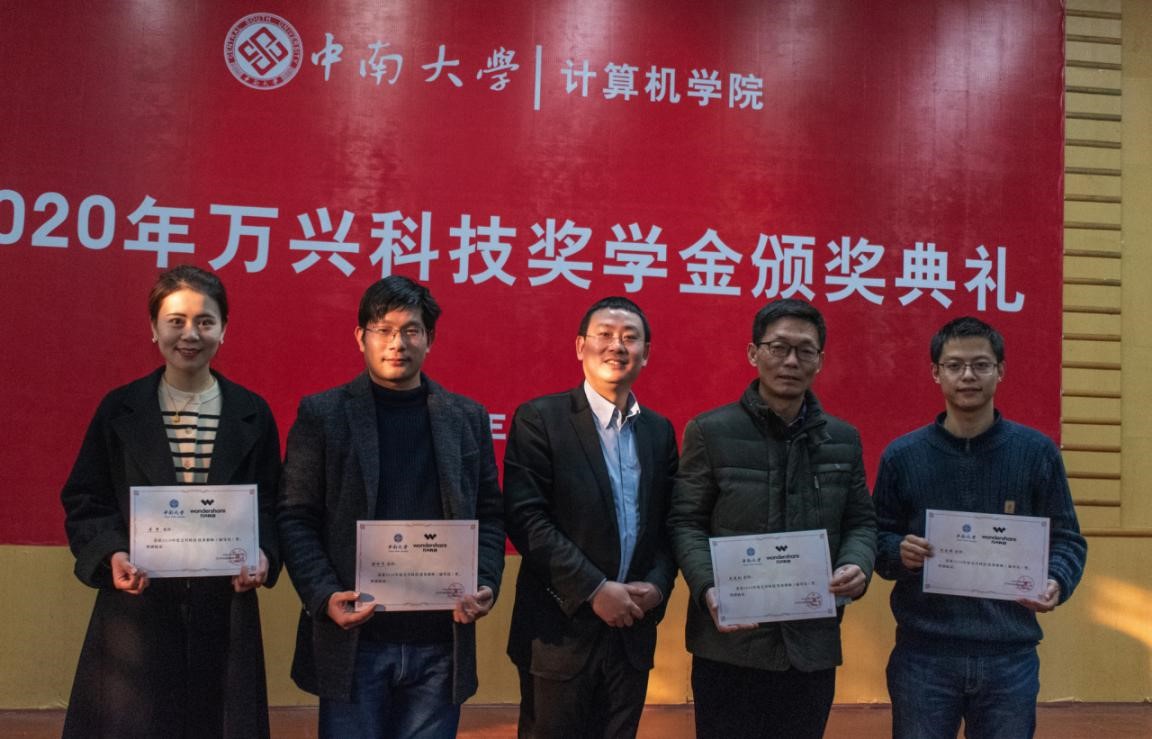 辅导员;万兴科技集团股份有限公司副总裁朱伟、华南区招聘总监罗培一行四人共同出席了本次颁奖典礼。