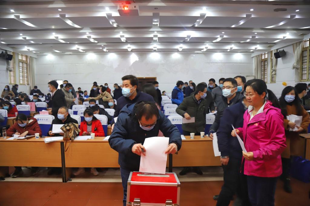 民主测评环节中,本着公平、公正、公开的原则,工作人员现场展示了投票箱,而后全体教职工参与了民主测评投票。