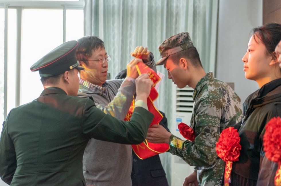老师为此次征兵过程中所做的大量支持工作的由衷感谢,并承诺决不辜负党和人民的期望,不辜负学校的嘱托,立志建功军营,为学校争取荣光。