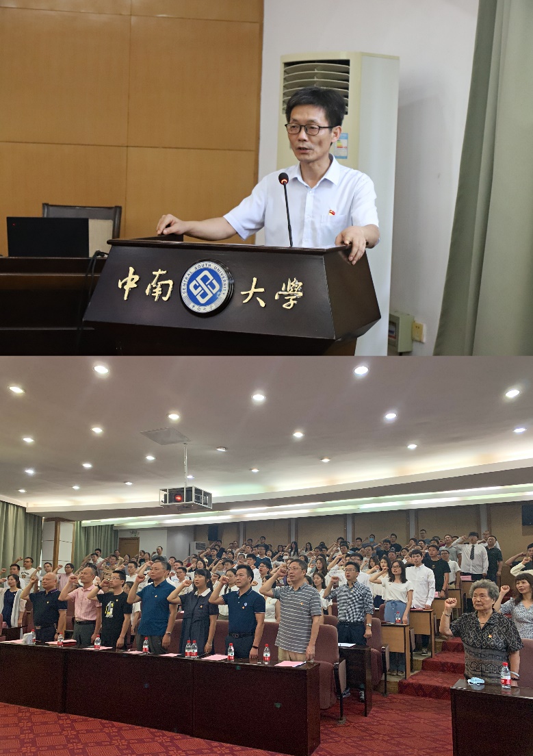 党委副书记史建权带领全体参会党员重温入党誓词。段桂华作为先进党支部书记代表,石金晶作为优秀党员代表先后发言。
