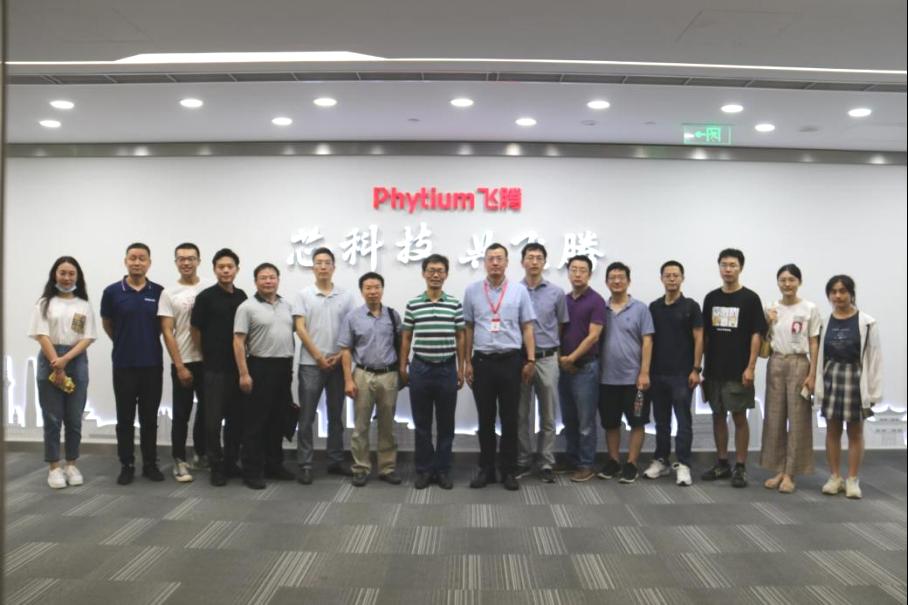 师生至长沙飞腾子公司调研走访。飞腾副总裁张承义对团队一行表示热烈的欢迎。在人力资源部总裁钱程东的陪同带领下众人参观了飞腾科技展厅。
