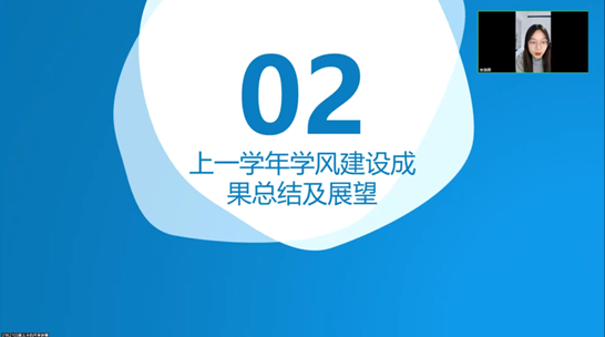 紧接着宋晓萌老师介绍上一学年每周两小时活动、学风大比拼活动的总体情况,同时表示了对未来学风建设工作的展望,重点攻克到课率偏低、就寝熄灯数据不乐观的问题。