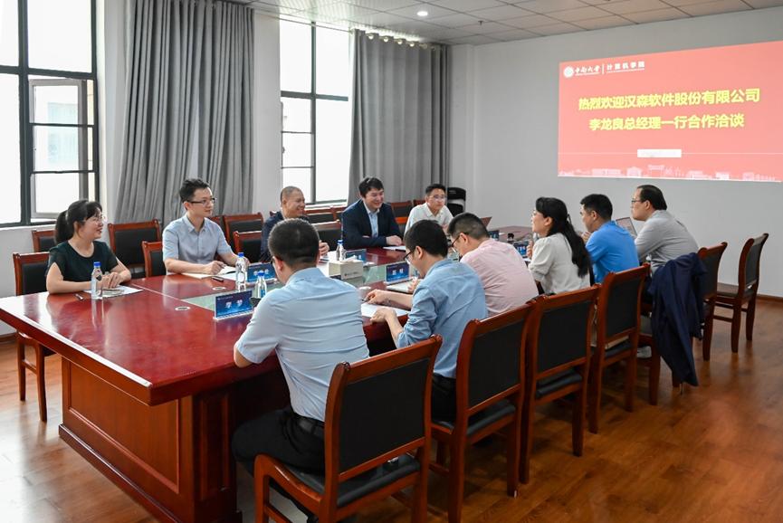 情况介绍,汉森软件何孟介绍企业情况。随后,参会人员重点围绕校企合作,暑期实地参访、企业奖助学金设立、企业开放日嘉年华活动、校企联合创办工作室等问题进行了深入交流和自由讨论。