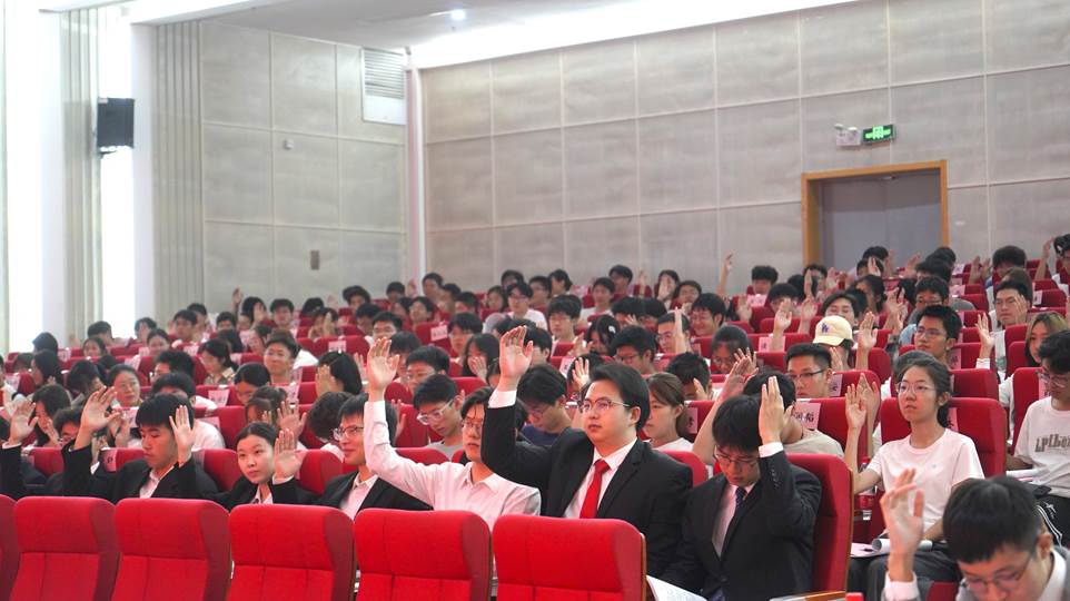 党委副书记王新辉、学生工作办公室主任师雷宏、团委书记陈司宇、本科生各级辅导员、学生会及研究生会全体成员和200余名学生代表出席会议。会议由吴宇涵同学主持。