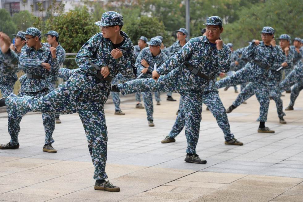 2024级军训新生所在的三营开始了分列式和匕首操的训练内容。