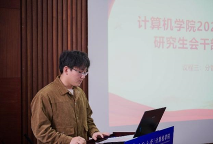 会议第二项,各部门部长依次对本部门工作进行总结。文体部部长祝月指出,研究生趣味运动会站位高、参与广、意义佳,极大地提升了同学们的团队协作精神与运动能力,充分展现了同学们的青春风采和活力;宣传部部长刘天杰总结了学术讲座、研讨会等活动宣传开展情况,罗列数据,突出成效;综合事务部部长陶怡佳总结报账、后勤等工作,切实确保了流程完整、合规;学术部成员伍天睿介绍,本学期学术部举办学术报告二十余场,涵盖学术论坛、创新项目、求职沙龙等多个领域;学生权益部部长敬亚霖表示,权益部积极落实学生的切实需求,如后勤食堂意见的收集反馈等,并协助其他部门开展工作。
