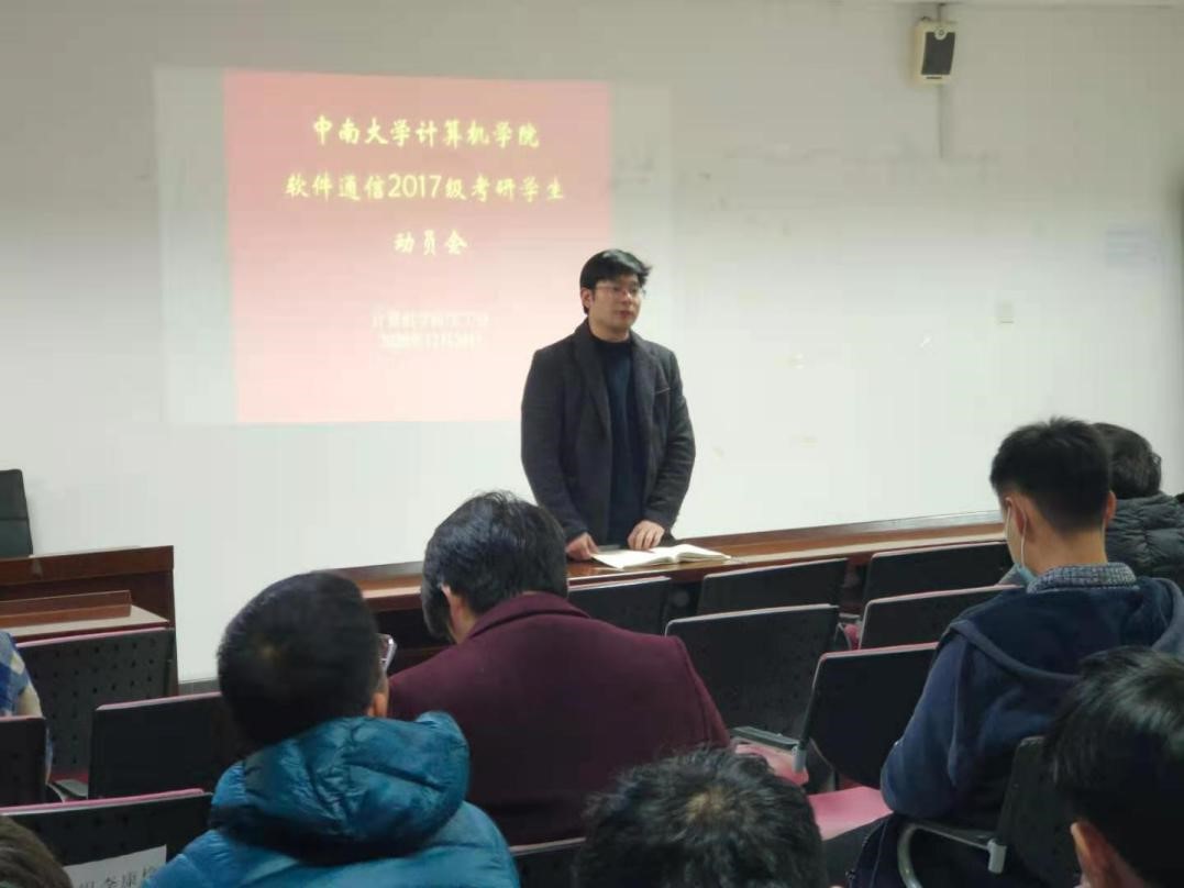 考研动员会在铁道校区二综411顺利进行,辅导员谢怀平老师和软件通信17级考研学生参加了本次大会。